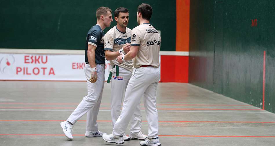 Mickaël Darmendrail (qui faisait son retour après plusieurs mois de blessure) et Peio Guichandut ont remporté la partie amicale de ce lundi 23 mars au trinquet Garat face à Pierre Etcheverry et Arai Murillo. Ils se sont imposés 40-21 en dominant leurs adversaires du début à la fin de la rencontre. Pierre Etcheverry et Peio Guichandut seront associés pour le Championnat Élite pro par équipes. Ils joueront leur première partie lundi 30 mars face à Julen Mariluz et Luis Sanchez au trinquet Garat à Saint-Jean-Pied-de-Port, à 17h.