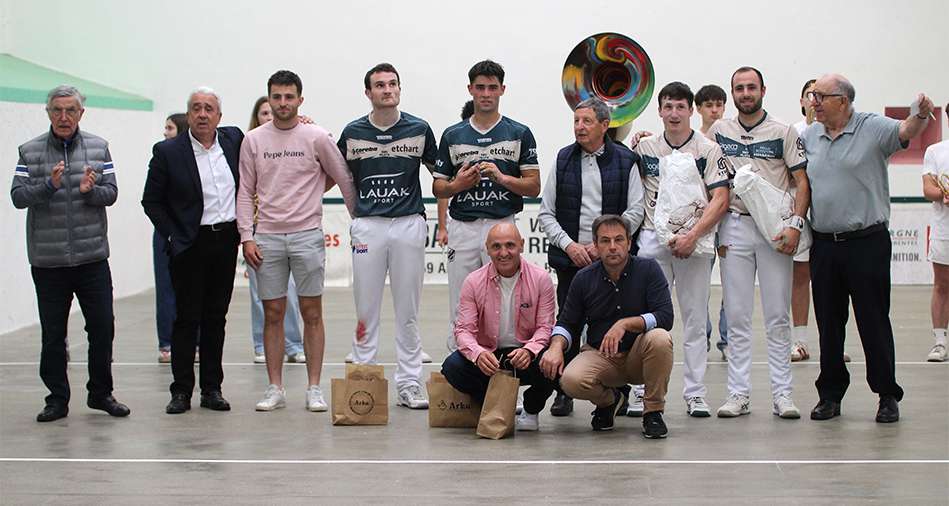 La finale du tournoi de la Foire au jambon a fait trinquet comble ce samedi matin à Bayonne ! Mattin Etcheverry et Jon Saint-Paul affrontaient Peio Hiribarne et Ellande Orhategaray. Ce dernier a dû remplacer au pied levé, Antton Luro, blessé à la main. Mattin Etcheverry et Jon Saint-Paul ont fait la course en tête tout au long de la partie. Cependant, leurs adversaires ont opposé une belle résistance et les points ont été bataillés du début à la fin de la rencontre. Leur persévérance n’aura pas suffi à renverser Mattin Etcheverry et Jon Saint-Paul, très complémentaires sur la kantxa. Ils se sont imposés 40-27.