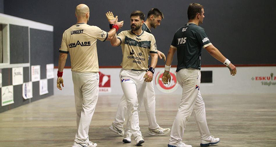 En suivant, Peio Larralde et Ximun Lambert ont dû faire le dos rond en début de partie face à Eneko Maiz et Andoni Iphar qui menaient 11-7. Les deux équipes sont restées dans un mouchoir de poche jusqu’à la mi-partie (18-18), puis Larralde-Lambert ont repris l’avantage pour mener le jeu à leur guise (26-18). Maiz-Iphar ont perdu de leur concentration au fil de la rencontre tandis que Larralde-Lambert élevaient leur niveau de jeu pour l’emporter finalement 40-24.